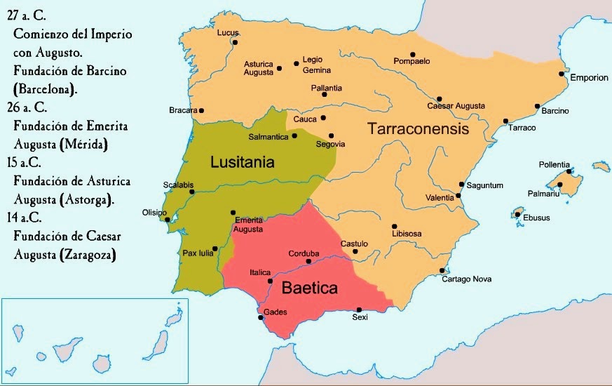 Mapa División de Augusto. Tarraconensis, Lusitania y Baetica